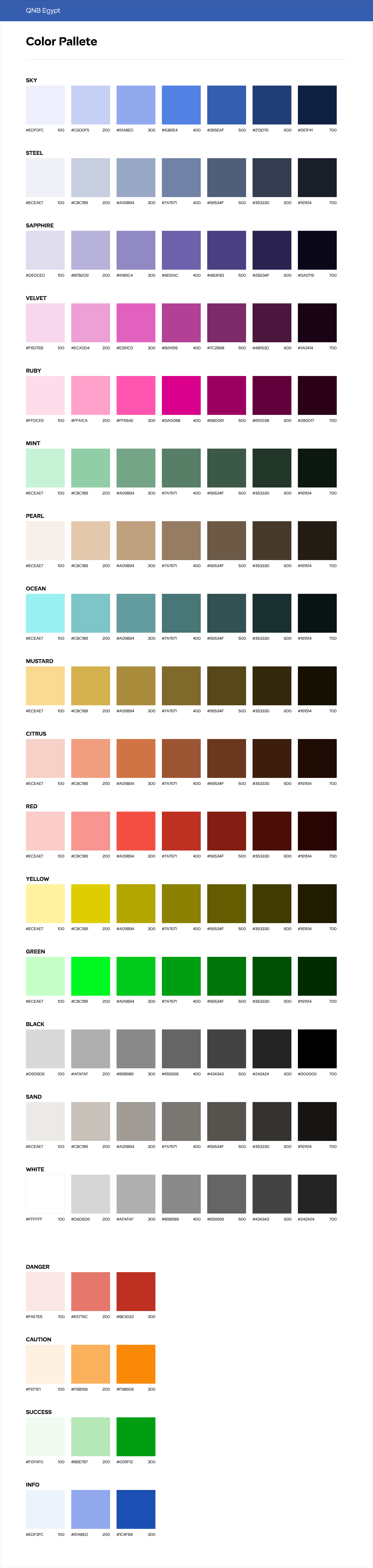 A simplified palette centered around QNB’s signature blue paired with balanced neutrals and accent tones for accessibility.