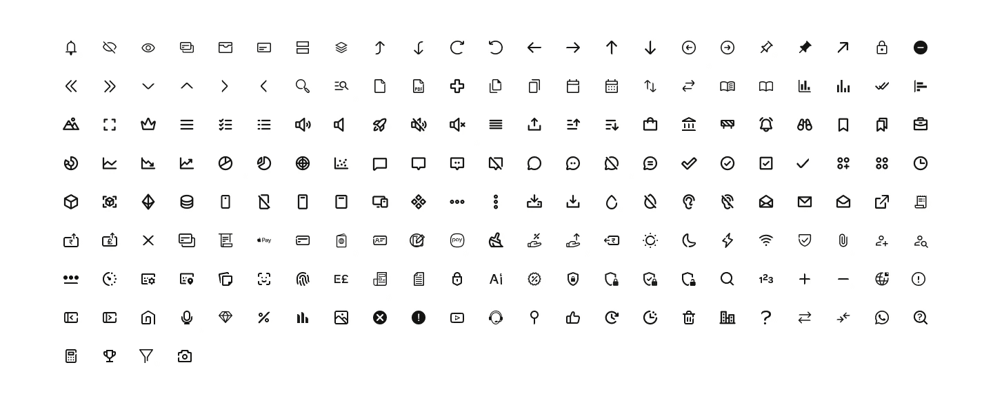 Unified stroke thickness, corner radii, and proportions for consistency across all icons.